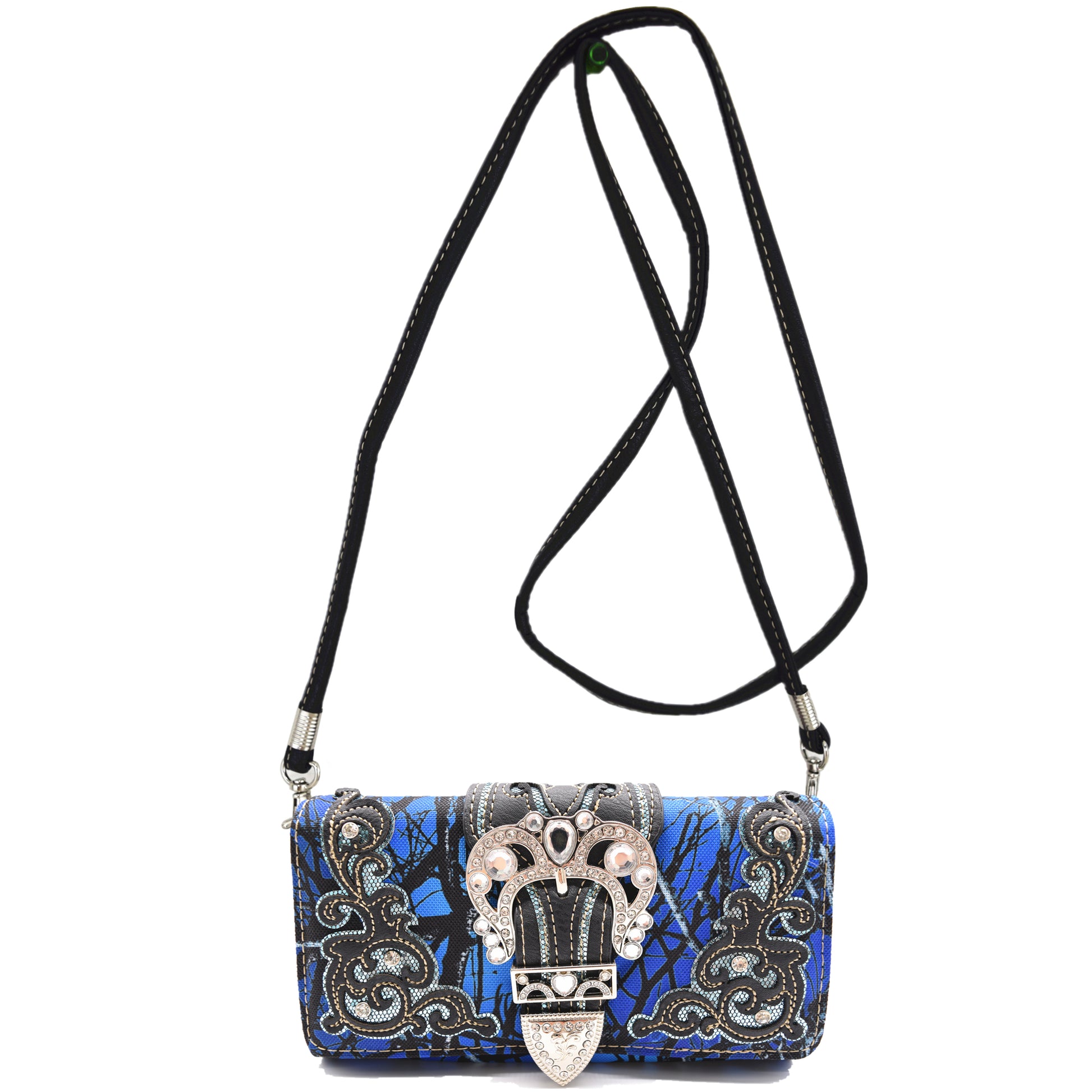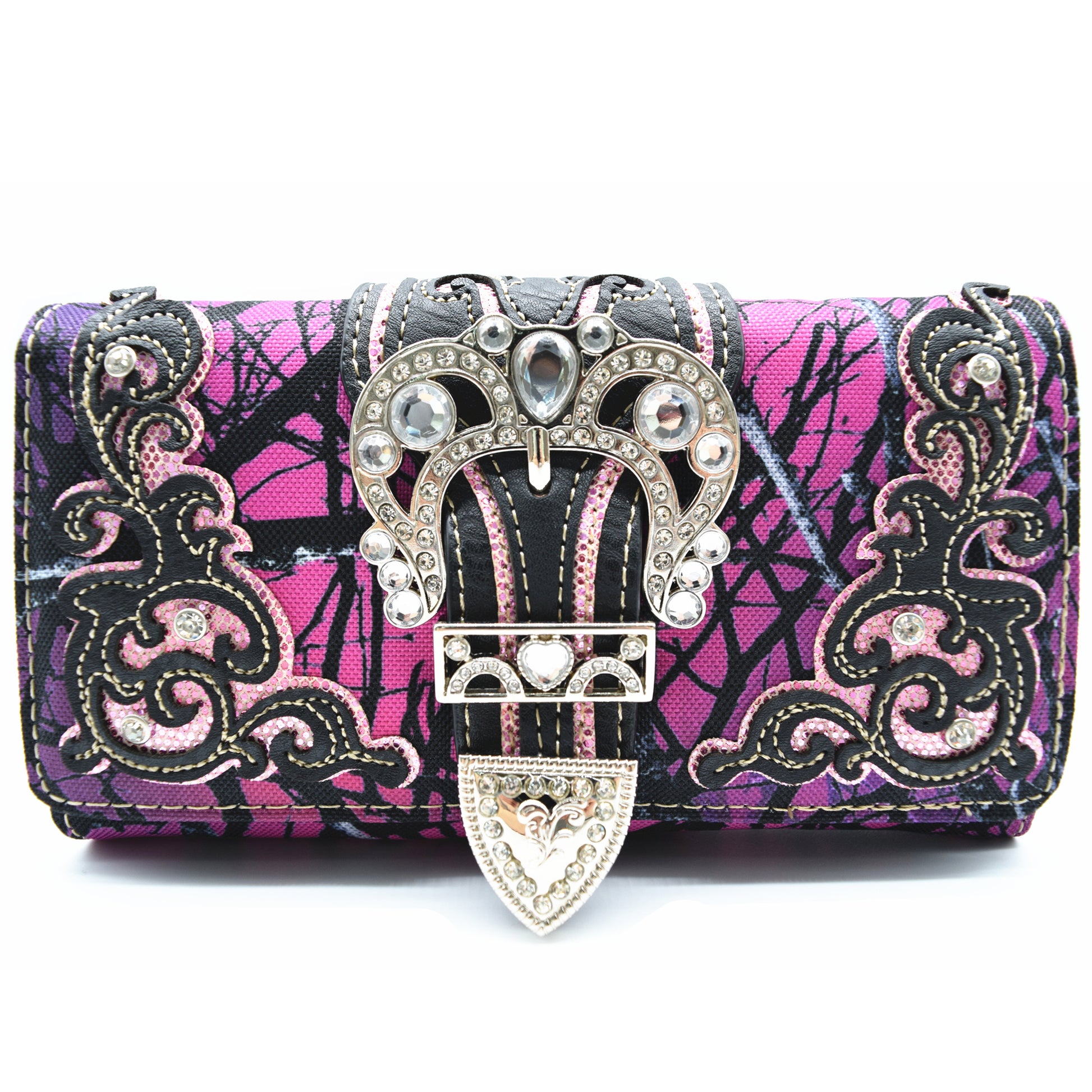 Camouflage Buckle Laser Cut Floral Western Style Women Trifold Wallet