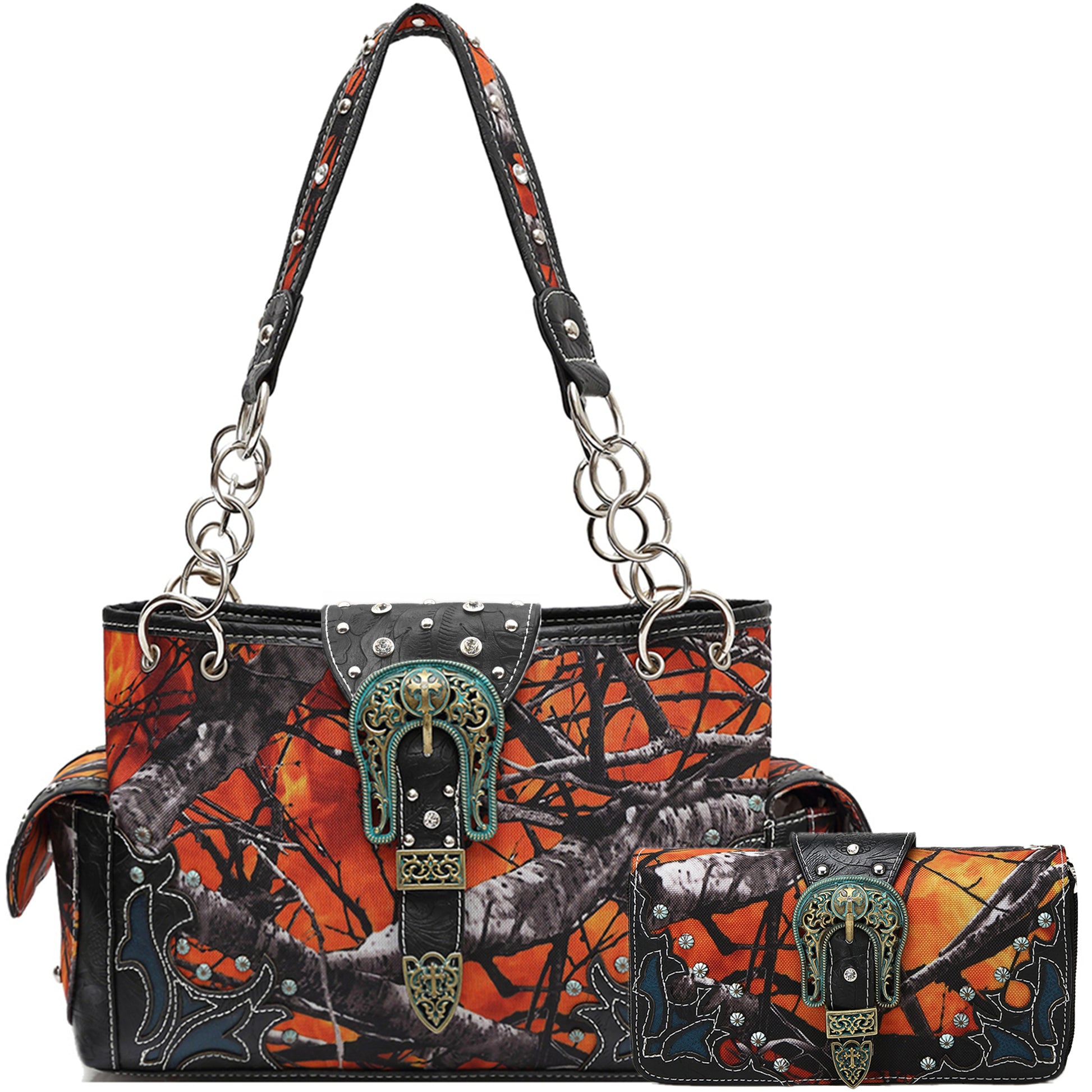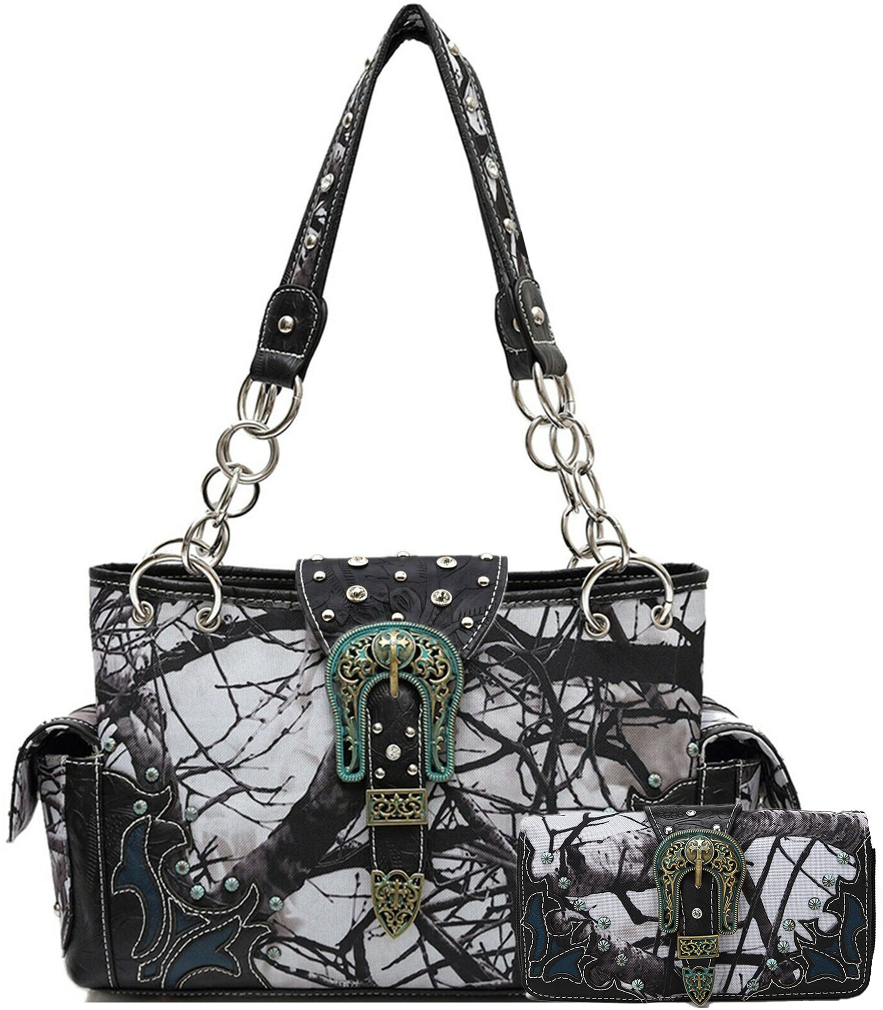 Camouflage Buckle Women Purse with Matching Wallet Set