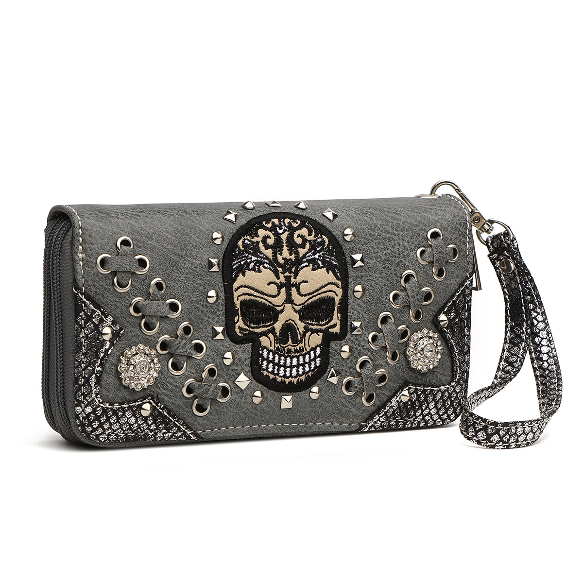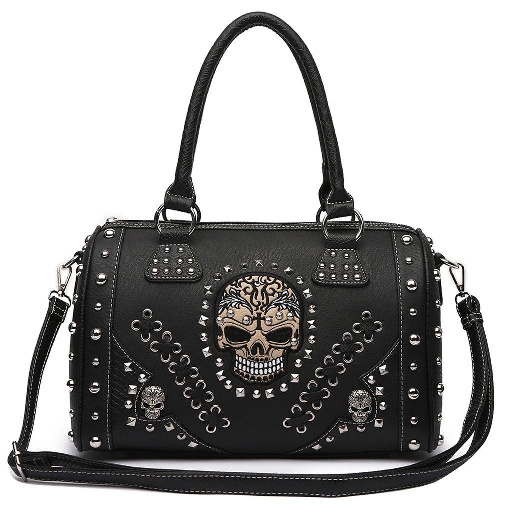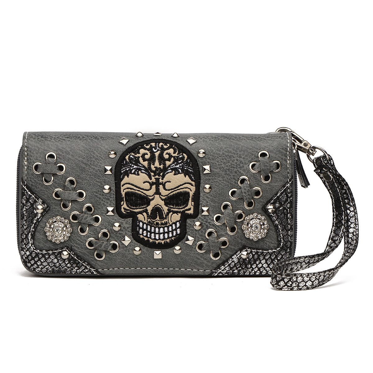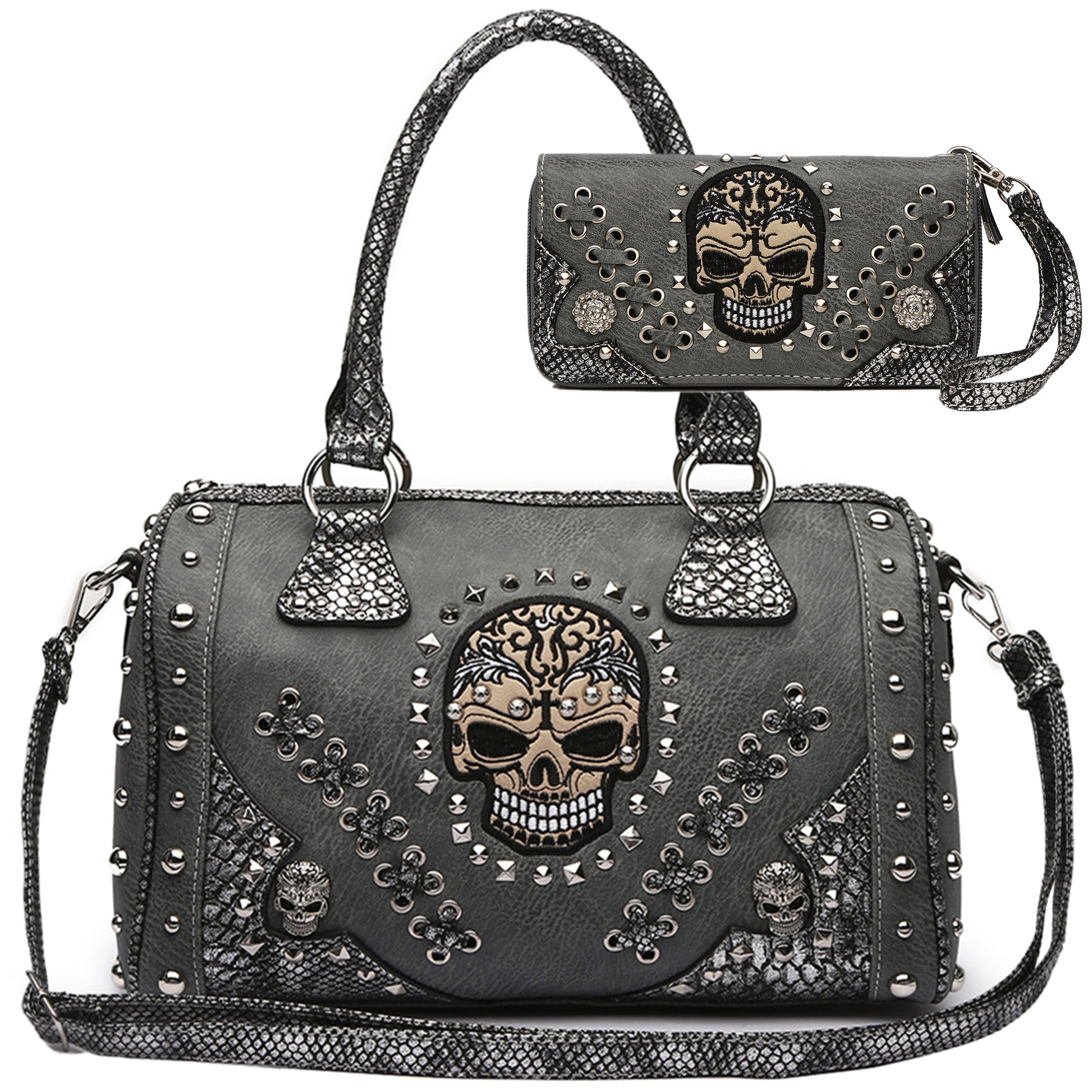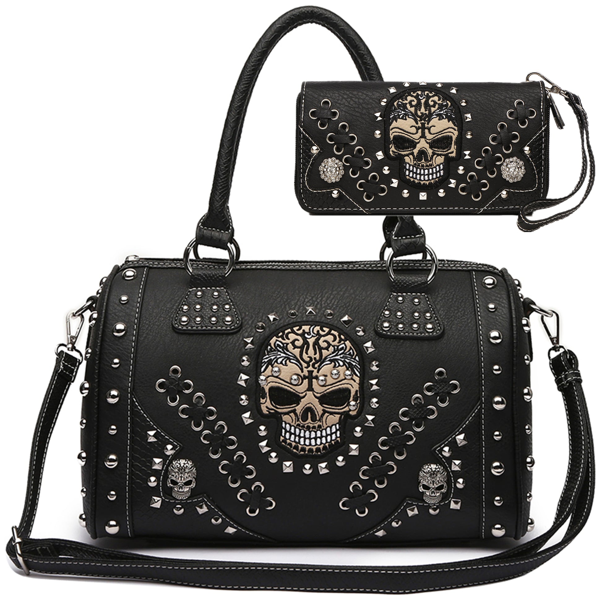 Gothic Skull Women Barrel Purse with Matching Wallet Set
