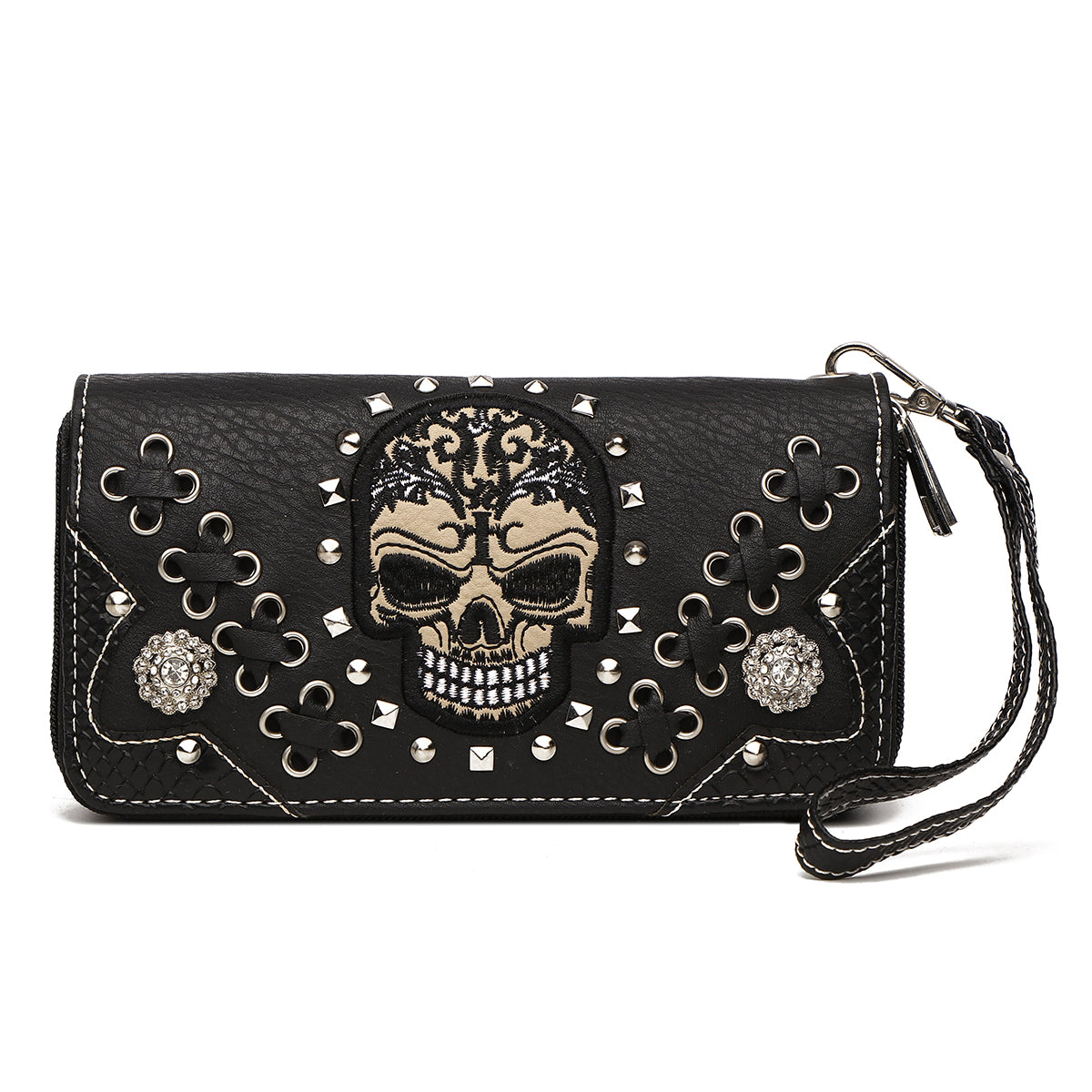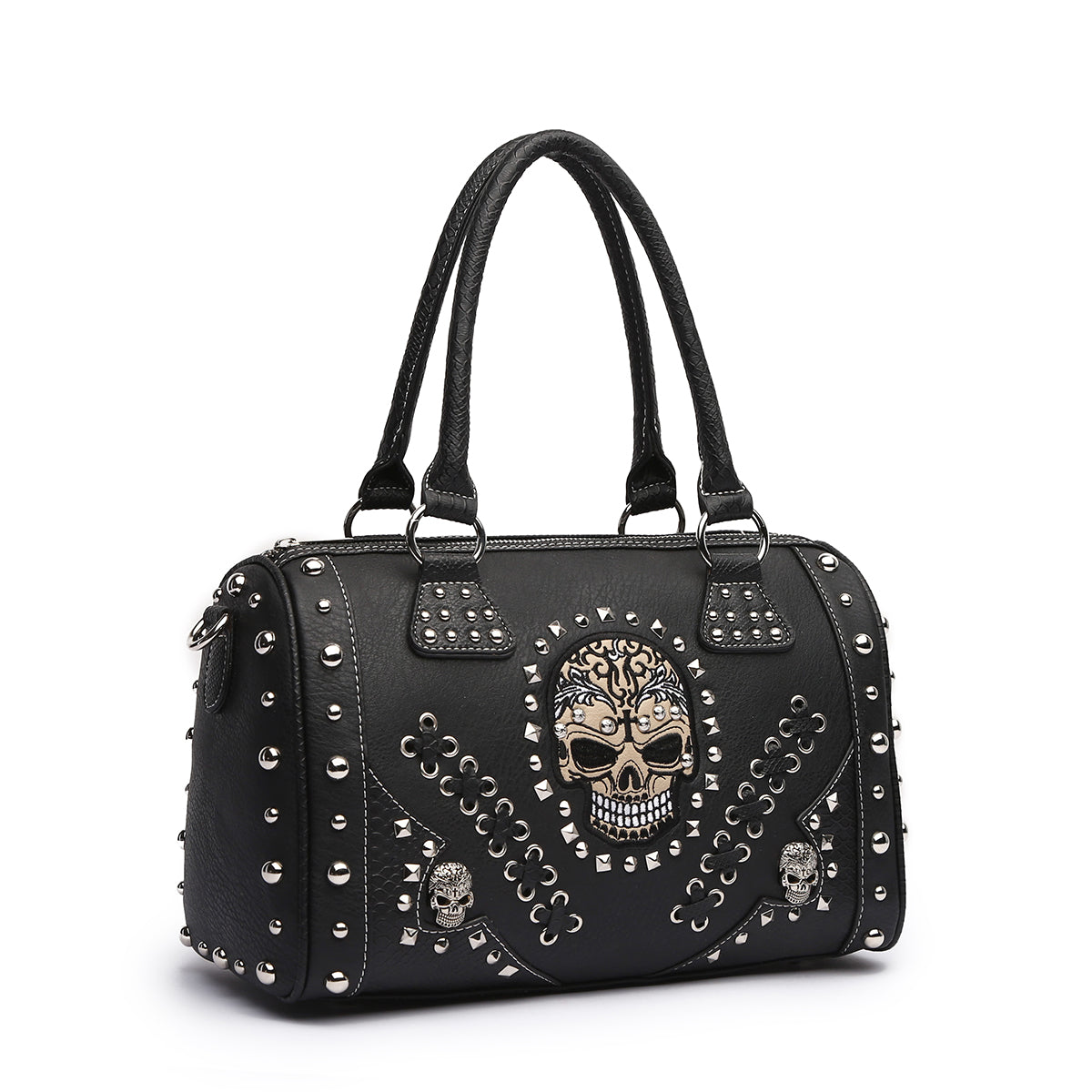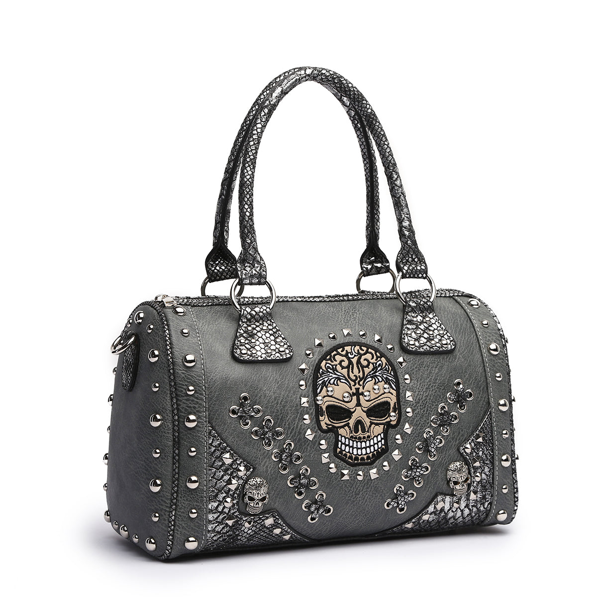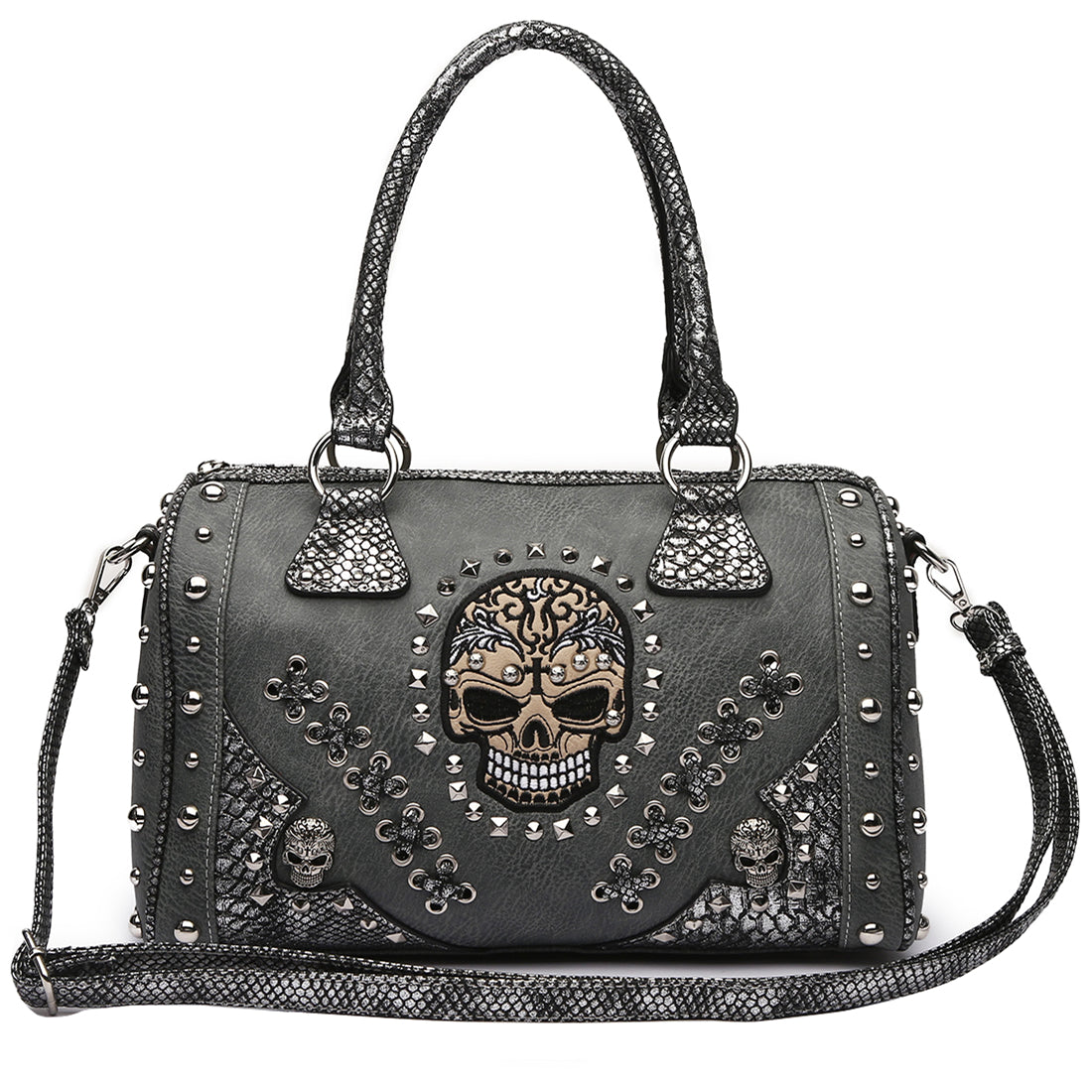Gothic Skull Women Barrel Purse with Matching Wallet Set