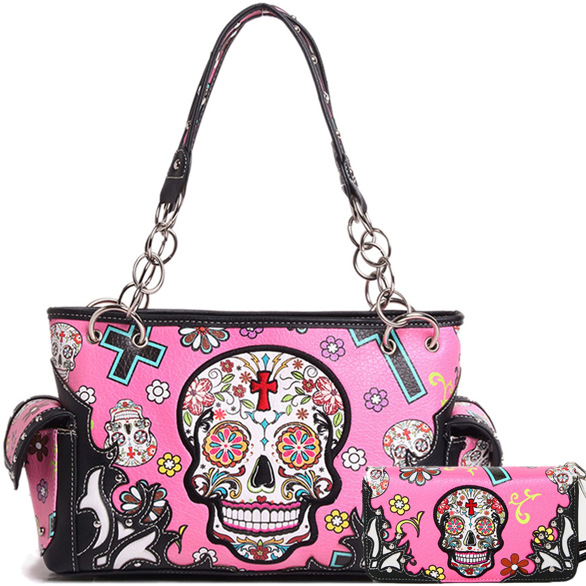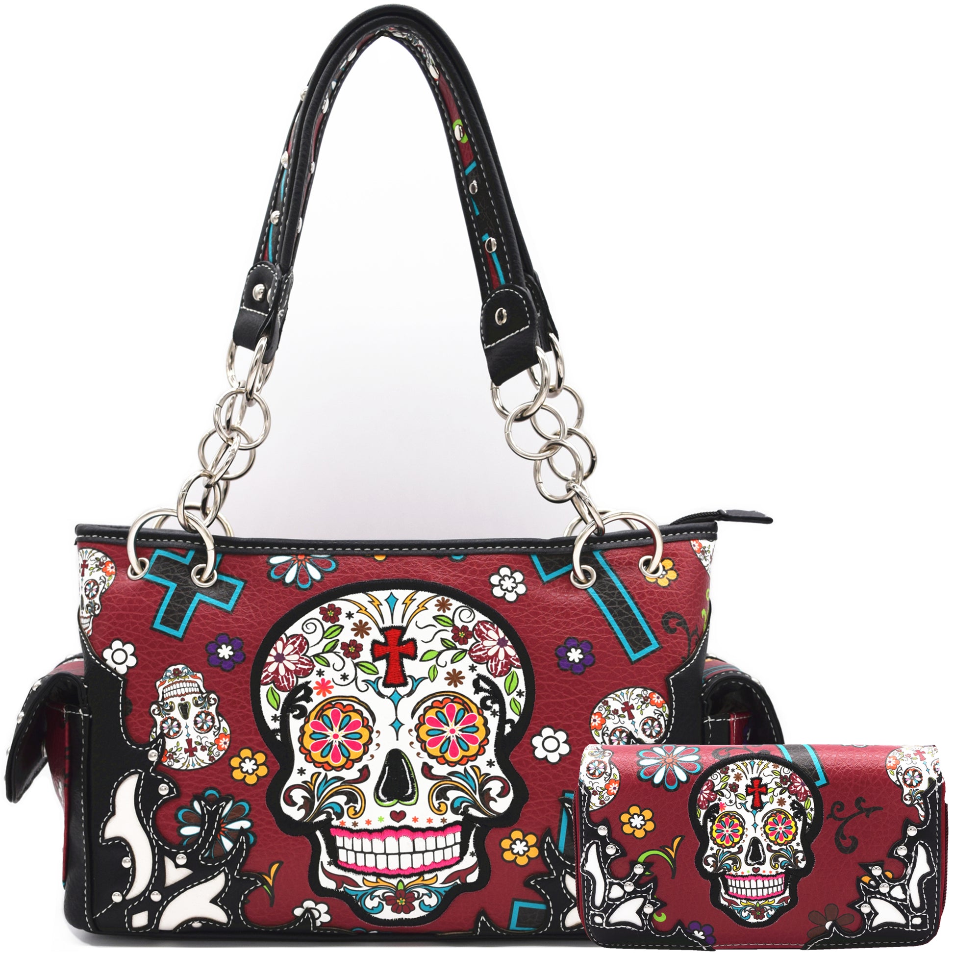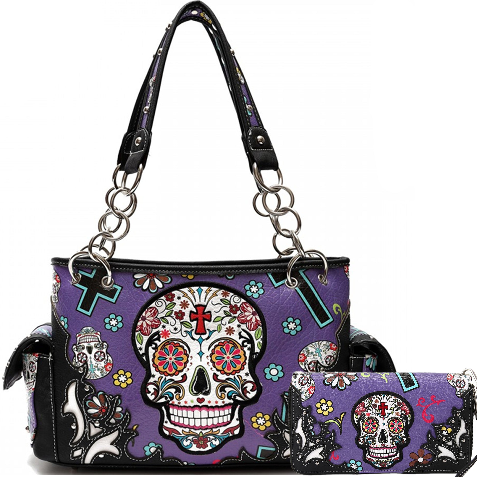 Sugar Skull Women Purse with Matching Wallet Set
