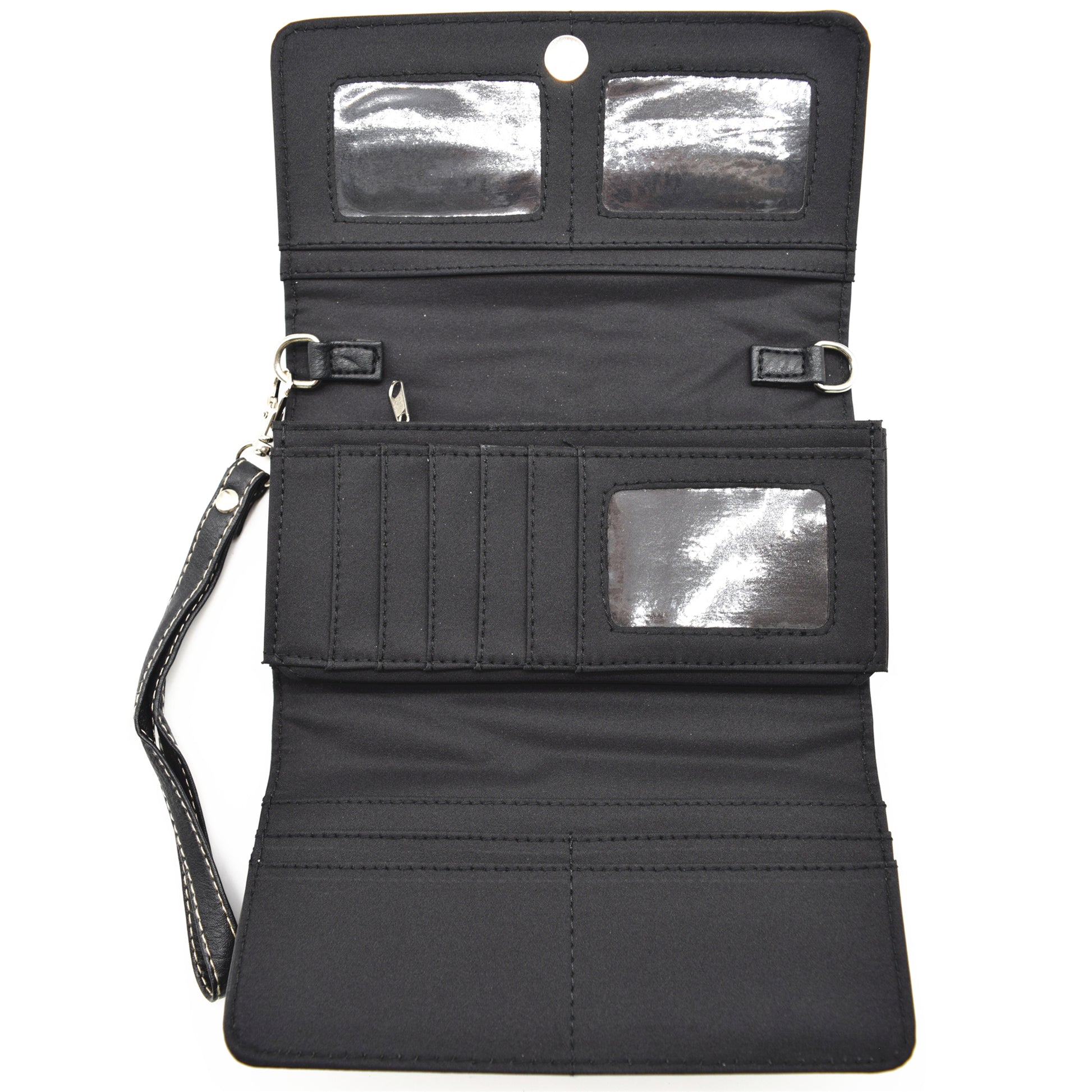12 Card Slots, 1 ID Window, 2 Photo Slot, 4 Slip Pockets | One zippered and open pockets on the inside for cash, credit cards, ID and more.