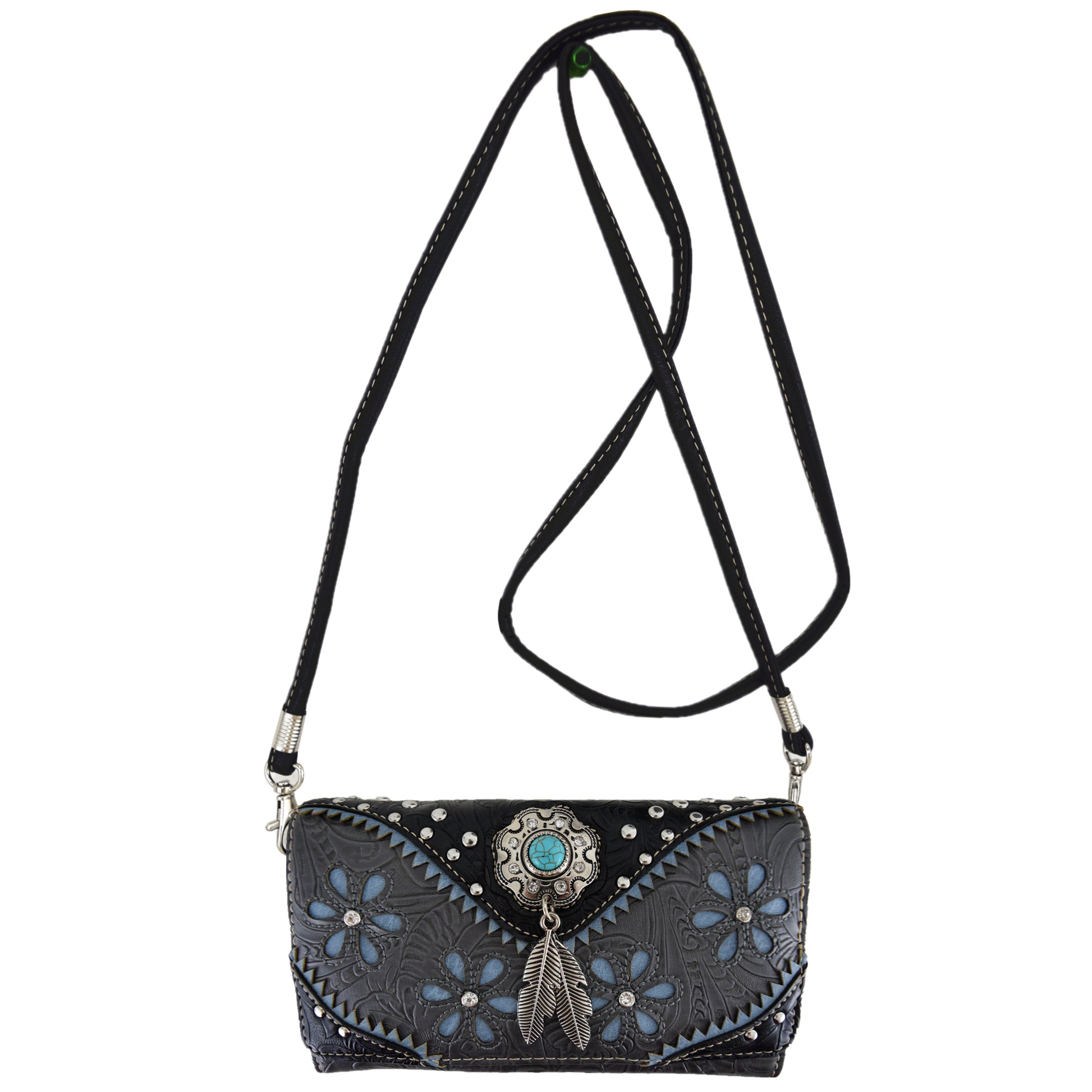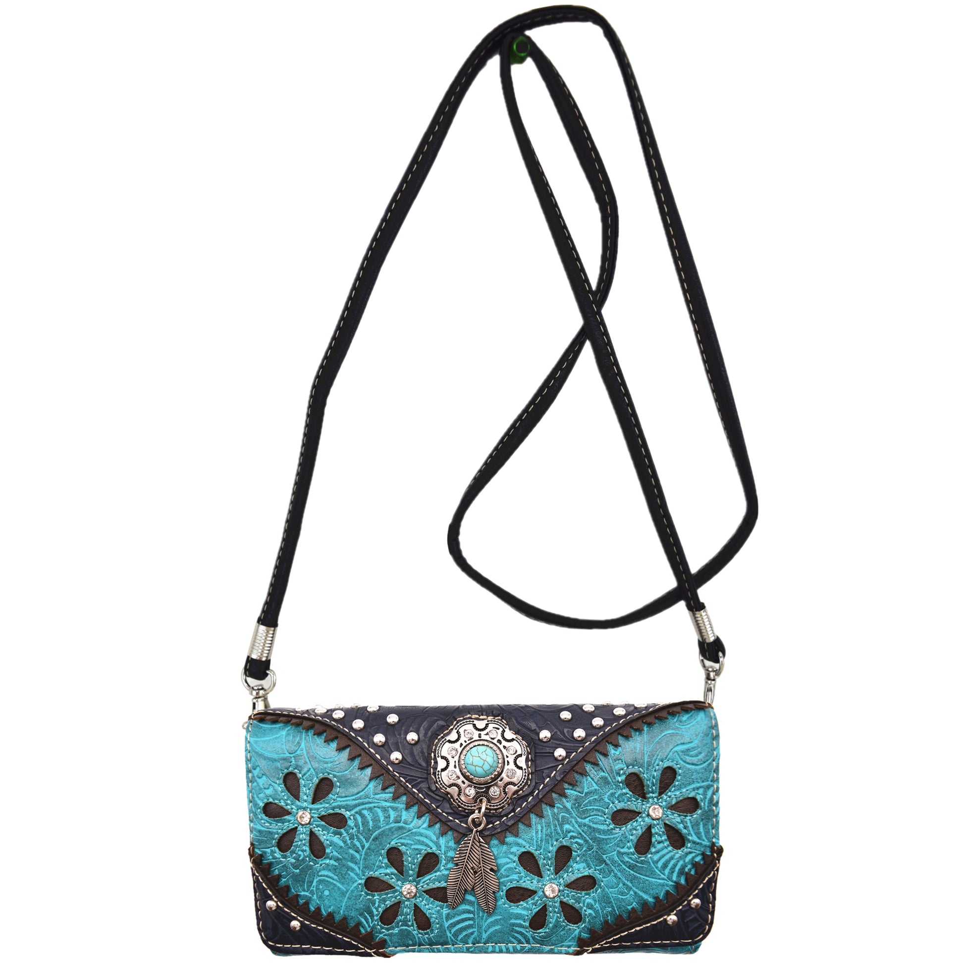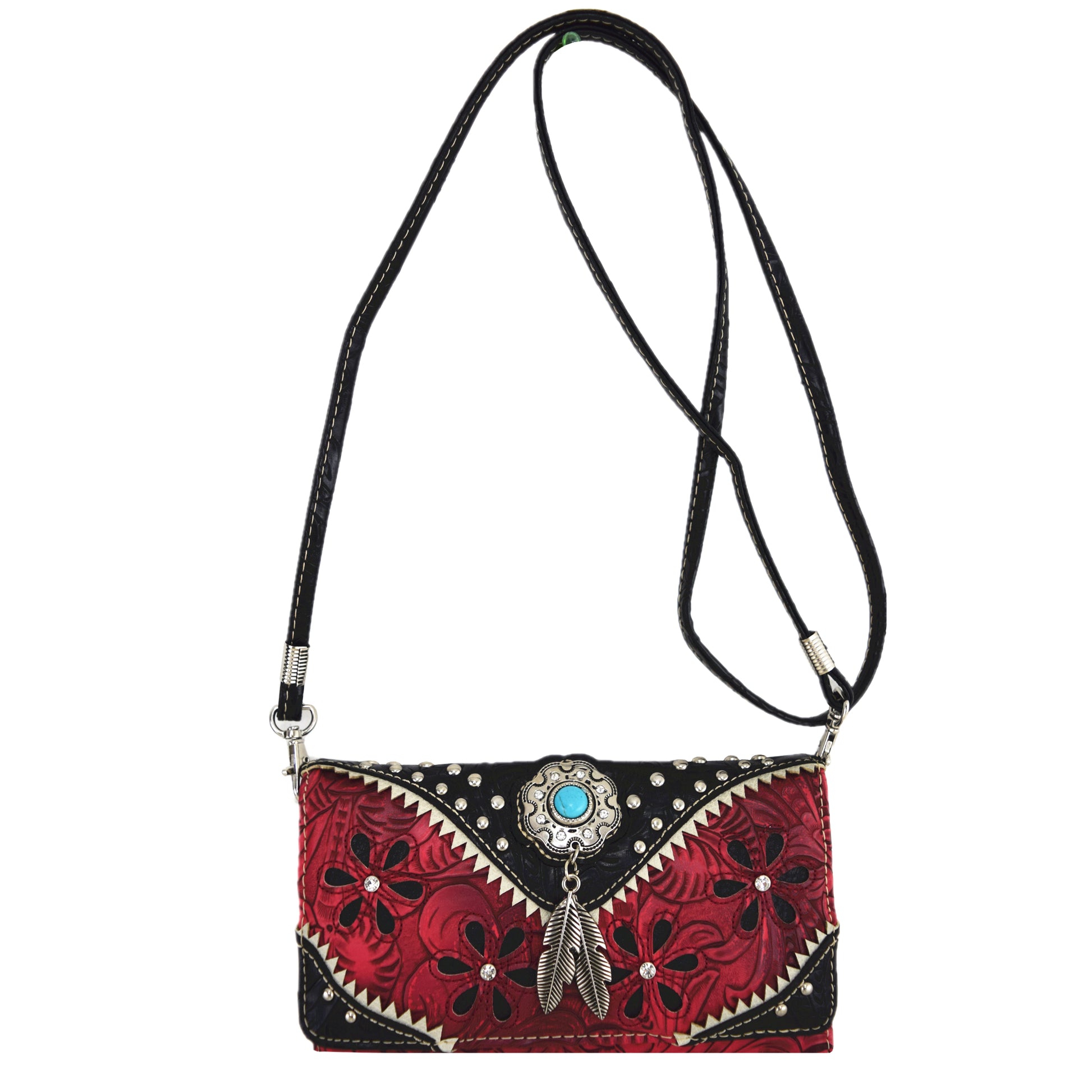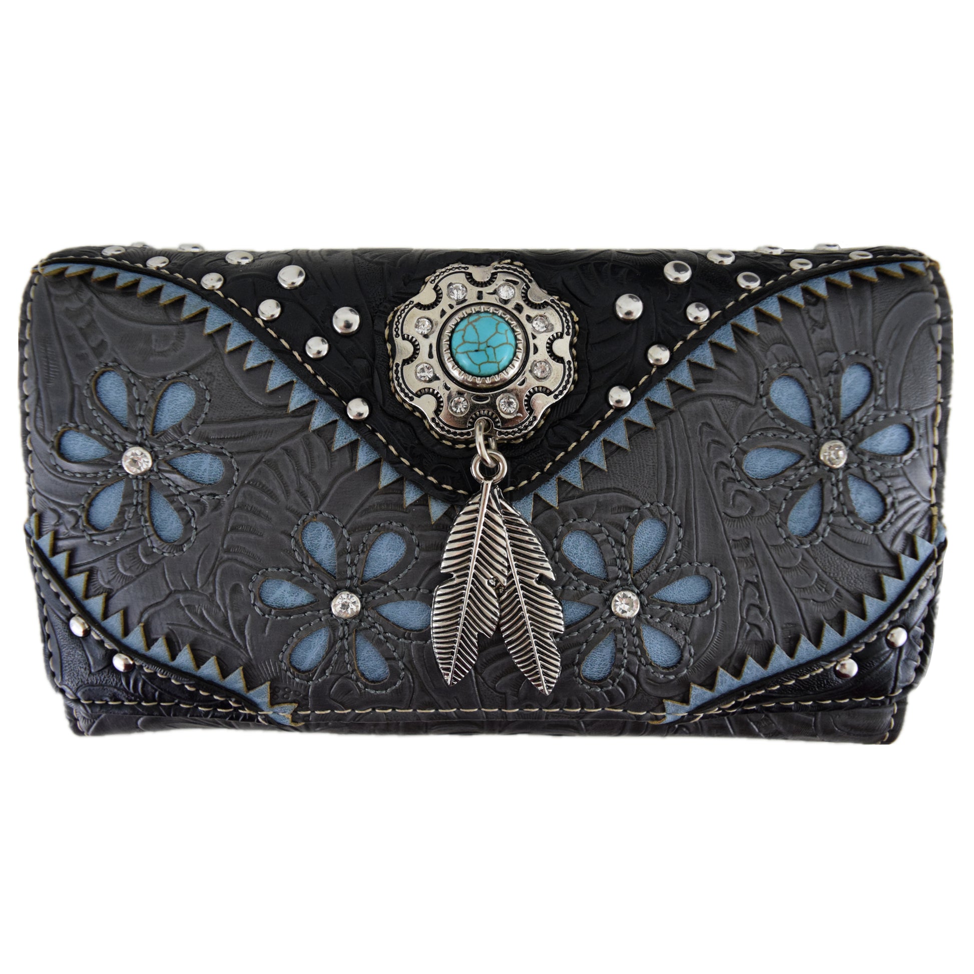 Western Style Feather Tooled Leather Floral Laser Cut Flower Women Trifold Wallet